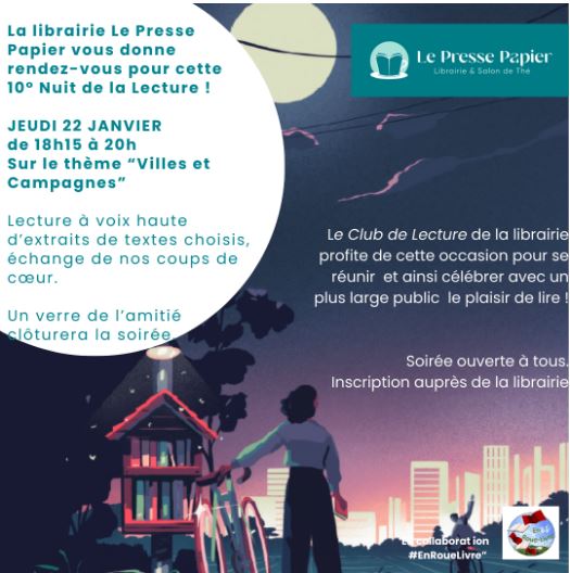 La librairie Le Presse Papier vous donne rendez-vous pour cette 10° Nuit de la Lecture ! “Villes & Campagnes” sont au cœur de cette soirée. "Vi...