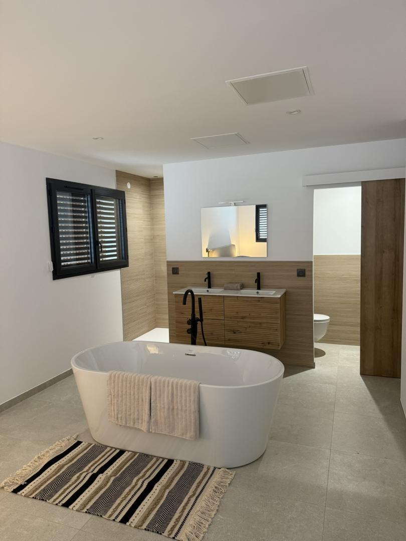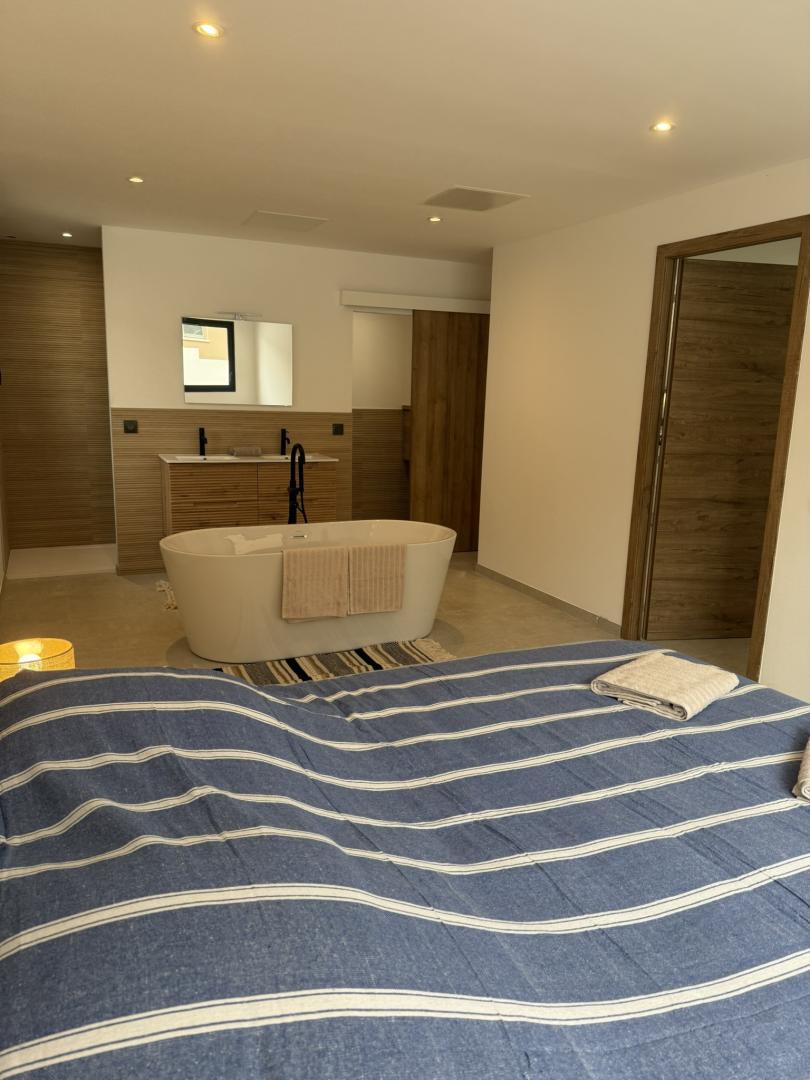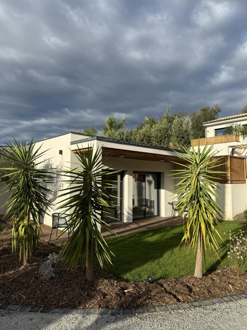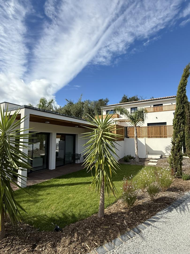 A l’entrée du village de Vivès, dans une forêt de chênes lièges, ce gîte climatisé, de plain-pied, est aménagé sur une propriété dans un lotissement calme.