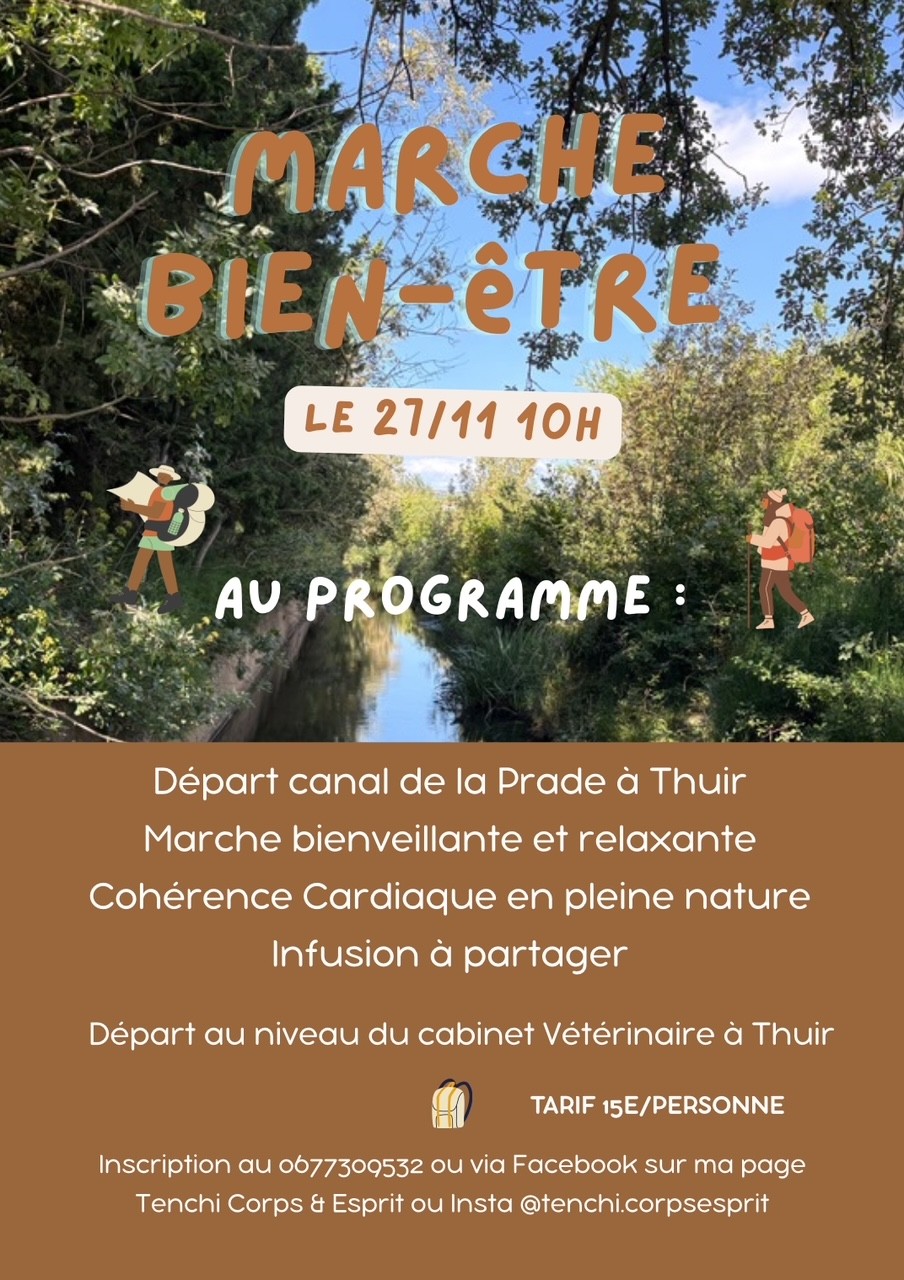 Départ canal de la Prade à Thuir, Marche bienveillante et relanxante, Cohérence cardiaque en pleinte nature, Infusion à partager...