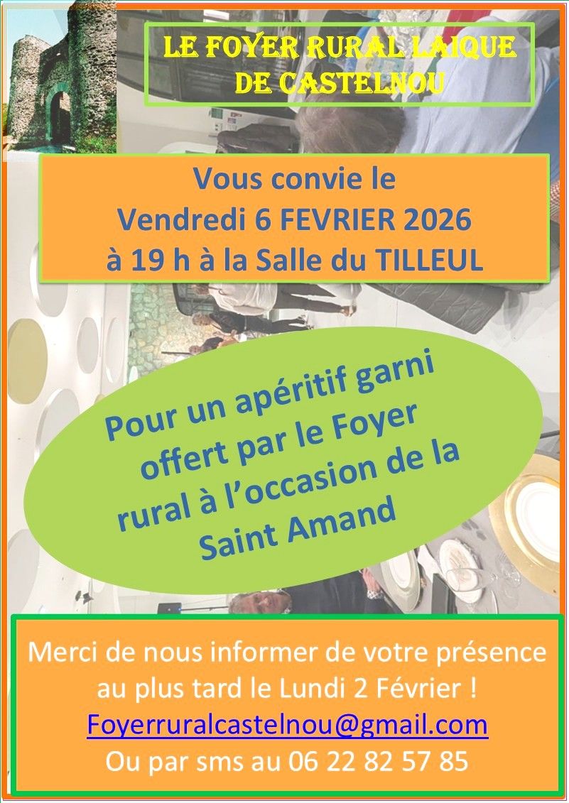 Rendez-vous pour une prochaine fête celle de la Saint AMAND, Saint patron de la commune de Castelnou, le Foyer rural est heureux de vous convier à u...