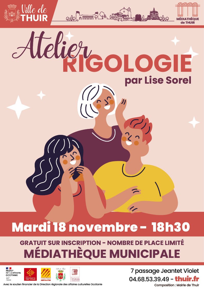 La médiathèque municipale vous propose un atelier découverte rigologie. Venez vous connecter à la joie, réveiller votre sourire! Par Lisa Sorel!...