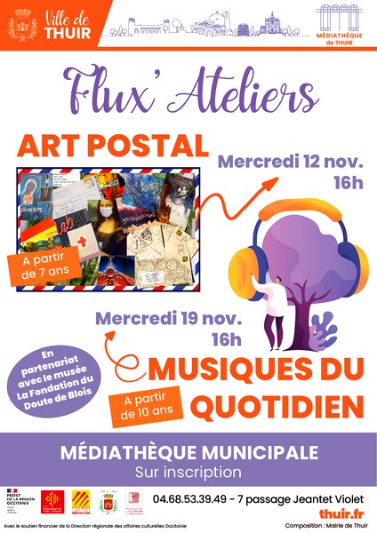 La médiathèque municipale vous propose des ateliers créatifs en novembre et octobre. Venez apprendre à créer en utilisant le dessin, la broderie...