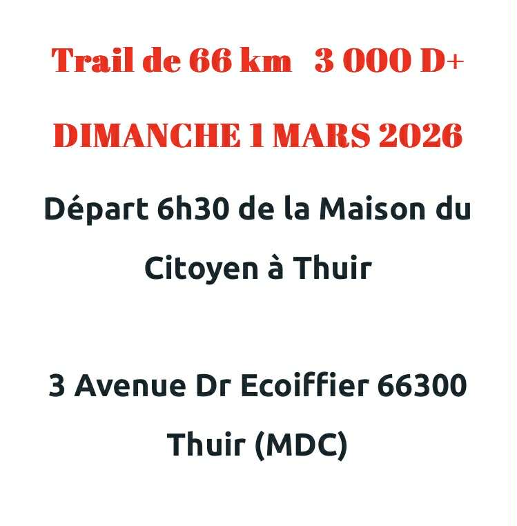 Trailers, Traileuses, Retenez la date du DIMANCHE 1er MARS 2026 pour le grand trail des Aspres! Départ 6h30 de la Maison du Citoyen à Thuir 3 Av...