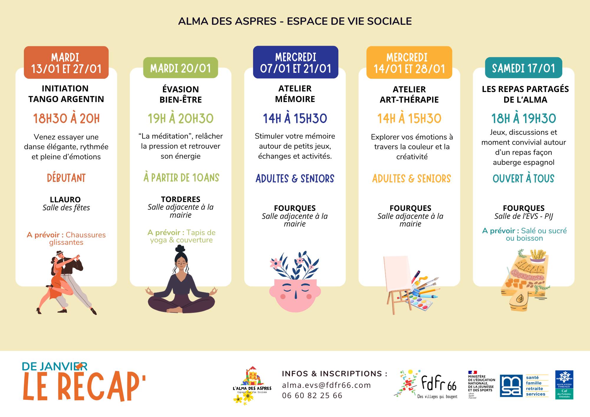 Janvier s’annonce riche en rencontres à l’ALMA des Aspres ! Tango argentin, évasion bien-être, ateliers mémoire, art-thérapie et repas part...
